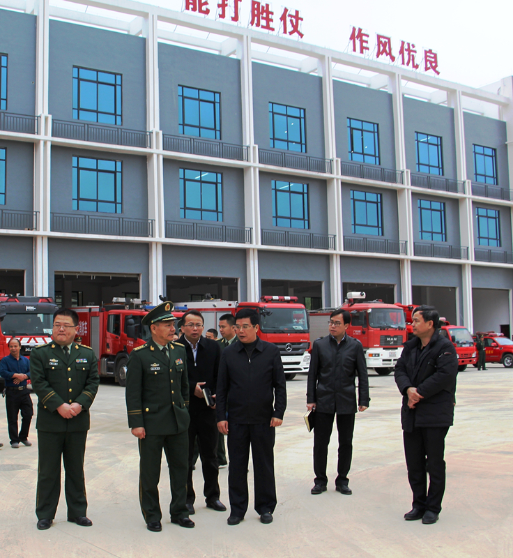 2月23日上午,南寧市消防支隊支隊長鄧錫中在經(jīng)開區(qū)黨工委書記、管委會主任何尚漢、經(jīng)開區(qū)消防大隊大隊長詹寧、綠港集團董事長楊東等領(lǐng)導(dǎo)的陪同下到綠港集團承建的吳圩空港新城消防站開展調(diào)研。