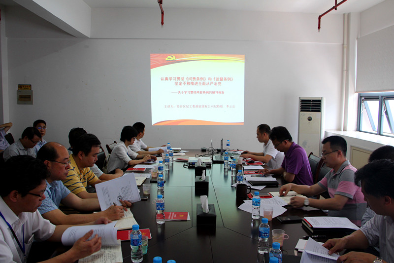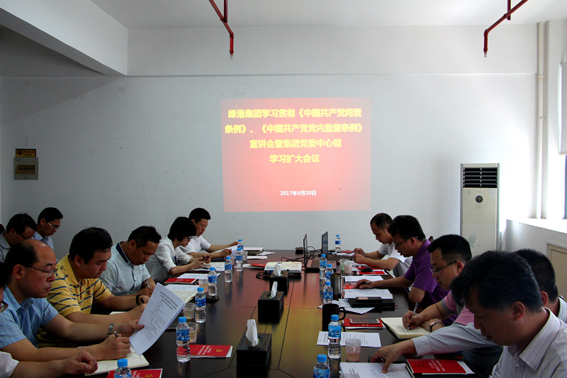 為進(jìn)一步加強(qiáng)廉政文化建設(shè),不斷提高黨員干部廉潔從業(yè)意識(shí),推進(jìn)廉潔從業(yè)教育工作,以黨風(fēng)廉潔建設(shè)新成效促進(jìn)綠港集團(tuán)健康發(fā)展,4月20日上午,綠港集團(tuán)黨委召開(kāi)學(xué)習(xí)貫徹《中國(guó)共產(chǎn)黨問(wèn)責(zé)條例》和《中國(guó)共產(chǎn)黨黨內(nèi)監(jiān)督條例》(以下簡(jiǎn)稱(chēng)“兩部條例”)宣講報(bào)告會(huì)暨中心組學(xué)習(xí)擴(kuò)大會(huì)議,會(huì)議由綠港集團(tuán)黨組書(shū)記、董事長(zhǎng)楊東主持,經(jīng)開(kāi)區(qū)紀(jì)工委派駐國(guó)有公司紀(jì)檢組組長(zhǎng)李云岳就“兩部條例”進(jìn)行了宣講,綠港集團(tuán)全體班子成員、集團(tuán)本部中層以上管理人員、子公司領(lǐng)導(dǎo)班子約50人參加會(huì)議。
