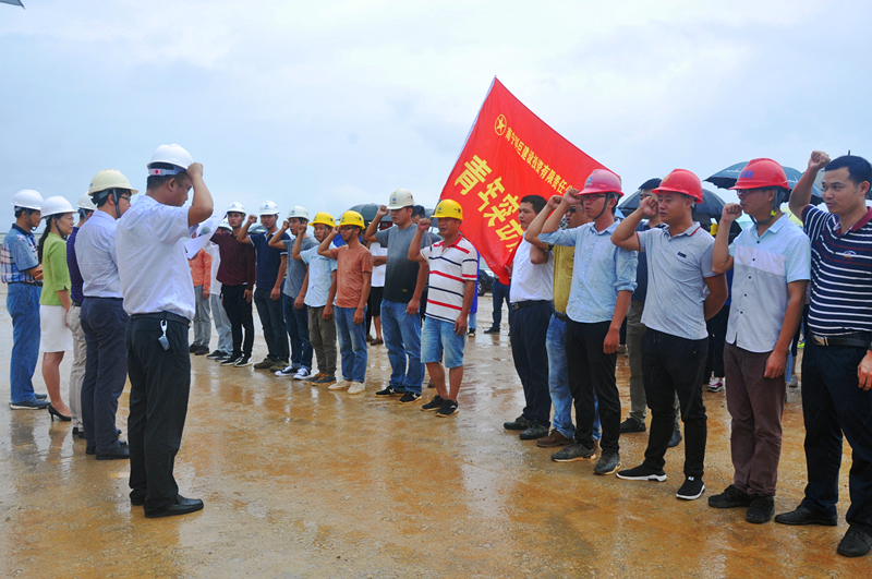 當(dāng)天,細(xì)雨蒙蒙,綠港集團黨委書記、董事長、總經(jīng)理龔國強在項目現(xiàn)場給參建黨員授予了“黨員先鋒隊”旗幟,給參建團員青年授予了“青年突擊隊”旗幟,綠港集團副總經(jīng)理、工會主席黃麗琴給吳圩空港經(jīng)濟區(qū)重點項目推進(jìn)組授予了“工人先鋒號”錦旗,激勵廣大黨員干部青年同志們要以強烈的政治責(zé)任感、立足本職崗位,充分發(fā)揚不怕吃苦、勇于負(fù)重,敢打硬仗、能打硬仗的“綠港鐵軍”優(yōu)良傳統(tǒng),為吳圩空港經(jīng)濟區(qū)項目建設(shè)做貢獻(xiàn)。