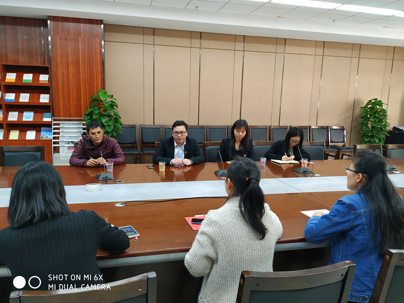 黨群工作局副局長蘇致誠認真聽取綠港集團黨建示范點建設工作情況