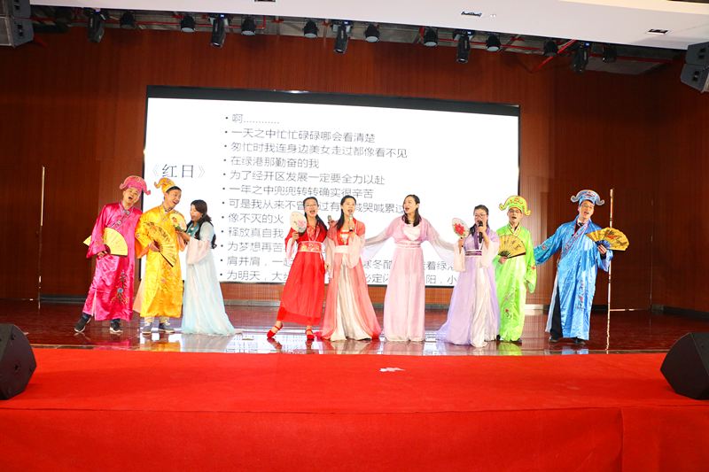 隨后,來自集團(tuán)工程管理部林重胤以及嘉通公司潘青青甜蜜獻(xiàn)唱《告白氣球》,讓大家感受到了愛情的絲絲美好。嘉通公司的《夸夸咱公司》,用三句半的表演形式唱出了綠港集團(tuán)濃濃的企業(yè)文化情愫,也展現(xiàn)了綠港員工積極、拼搏、向上的精神?!段乙鼐G港》、《聲臨其境》、《好運(yùn)來》、《愛》、《好嗨喲》等多個(gè)節(jié)目在觀眾的熱情掌聲中聯(lián)袂奉上一場精彩演出,整個(gè)活動(dòng)歌聲笑聲、熱烈的掌聲匯成了歡樂的海洋。集團(tuán)營銷管理中心的《四小天王齊賀歲》以及集團(tuán)計(jì)劃運(yùn)營部、紀(jì)檢監(jiān)察審計(jì)部、安全監(jiān)督部聯(lián)合帶來的《蒙面唱將猜猜猜》將活動(dòng)推向高潮,現(xiàn)場掌聲不斷。快板《綠港贊歌》道出了綠港集團(tuán)成立五載,綠港人用智慧和汗水所取得的成效。最后,集團(tuán)領(lǐng)導(dǎo)班子壓軸出場,帶來詩歌朗誦《相信未來》,贏得陣陣掌聲,讓大家堅(jiān)定了信心、鼓足了干勁,對美好生活更加熱愛和向往。