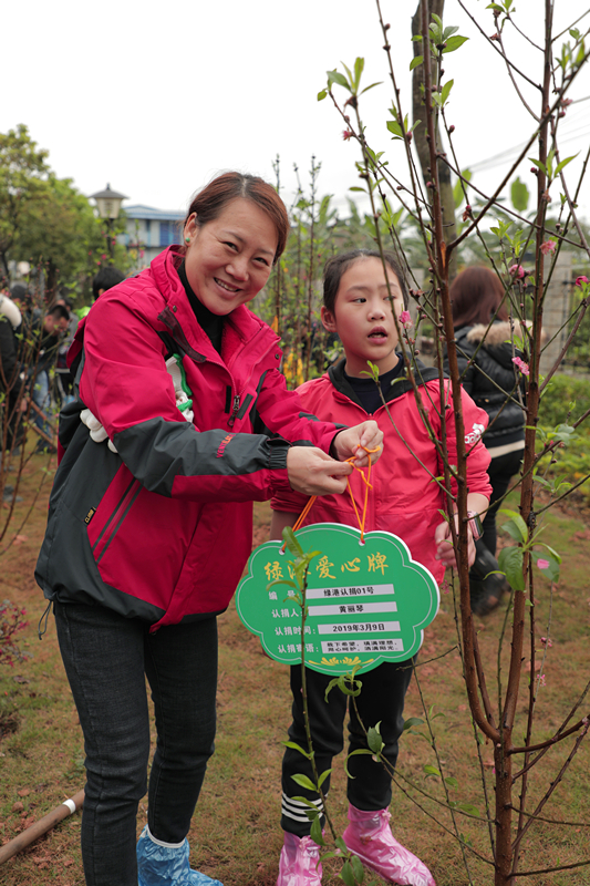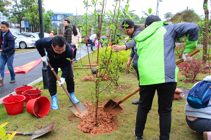 當(dāng)天,綠港集團還舉行了植樹護綠活動。在細雨紛飛中,家長和孩子們一起動手,分工協(xié)作。大家栽得認(rèn)真,干得賣力,揮鍬鏟土、挖坑、栽樹、蓋土、澆水,各個環(huán)節(jié)銜接有序,配合默契。整個植樹活動現(xiàn)場熱火朝天,歡聲笑語不絕于耳。經(jīng)過一個多小時的揮汗奮戰(zhàn),上百棵小樹苗整齊的“站”在了綠港·國際中心桃樹林中。放眼望去,樹苗迎風(fēng)挺立、搖曳生姿,大家看著這一片自己親手種下的樹苗,無不露出幸福的笑容,紛紛與小樹苗合影。綠港集團下屬榮鑫公司副總經(jīng)理唐欽月表示:“植樹造林是一項利于當(dāng)代、造福子孫的偉大工程。綠港集團成立五年來,每年都積極組織員工開展義務(wù)植樹造林活動。今天我們帶上孩子一起參加義務(wù)植樹活動,不僅增強了職工們生態(tài)環(huán)境保護的責(zé)任感,也給孩子們樹立了關(guān)心、愛護以及主動參與家園建設(shè)的意識和榜樣?!?nbsp;