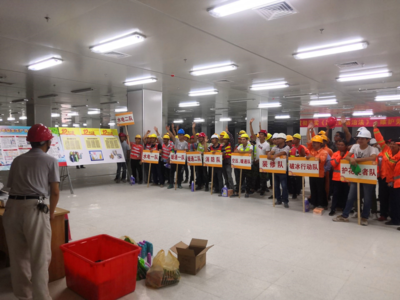 影片播放結(jié)束后,緊接著開展的是安全生產(chǎn)知識競賽活動。參與競賽的人員根據(jù)不同工種、不同部門分成9支隊伍。競賽內(nèi)容包括安全生產(chǎn)法律法規(guī)、應(yīng)急救援、消防、減災(zāi)防災(zāi)、勞動保護等多方面知識,競賽形式為舉手搶答。競賽過程中,9支代表隊你追我趕,毫不示弱,戰(zhàn)況十分激烈。選手們的活躍表現(xiàn)不時引來陣陣掌聲和歡笑聲,即使中途突發(fā)工地停電狀況,也未能澆滅大家的熱情,比賽在高漲的氣氛中繼續(xù)進行。此次競賽以寓教于樂的形式對管理人員和一線施工人員進行安全知識普及,除進一步提高其安全防范意識和應(yīng)對事故的處理能力,還豐富了大家的業(yè)余文化生活,為有效防止安全事故的發(fā)生提供了有利保障。