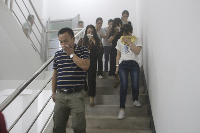 當(dāng)天下午15:00,隨著模擬煙霧的放出,模擬火災(zāi)警報拉響,各參加火災(zāi)疏散演習(xí)的人員按照既定的撤離路線,在工作人員的指揮下迅速撤離“事故”現(xiàn)場,撤離過程中大家紛紛用濕毛巾捂住自己的口鼻,弓著腰沿著墻壁迅速撤離到一樓安全地點,整個撤離過程不到2分鐘。經(jīng)過周密的部署和安排,疏散演示實現(xiàn)了安全、有序、及時撤離的預(yù)期目標。消防培訓(xùn)老師對演練效果給予充分肯定,并圍繞消防安全“四個能力”、“四懂四會”為大家講解了消防知識,詳細介紹了如何撲滅初期火災(zāi)及一些注意事項,并重點講解了在辦公人員密集的場所發(fā)生火災(zāi)時如何逃生的知識。
