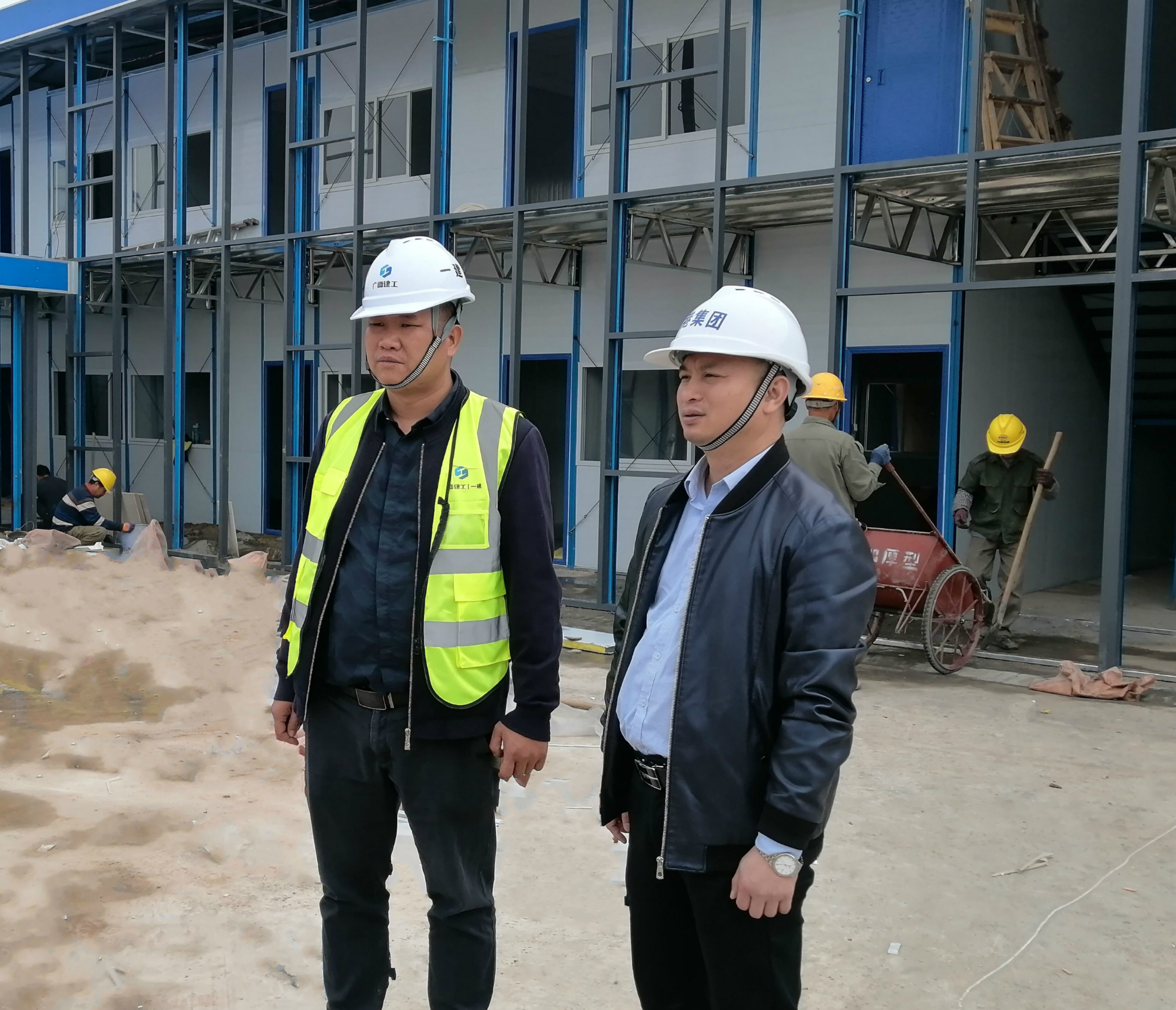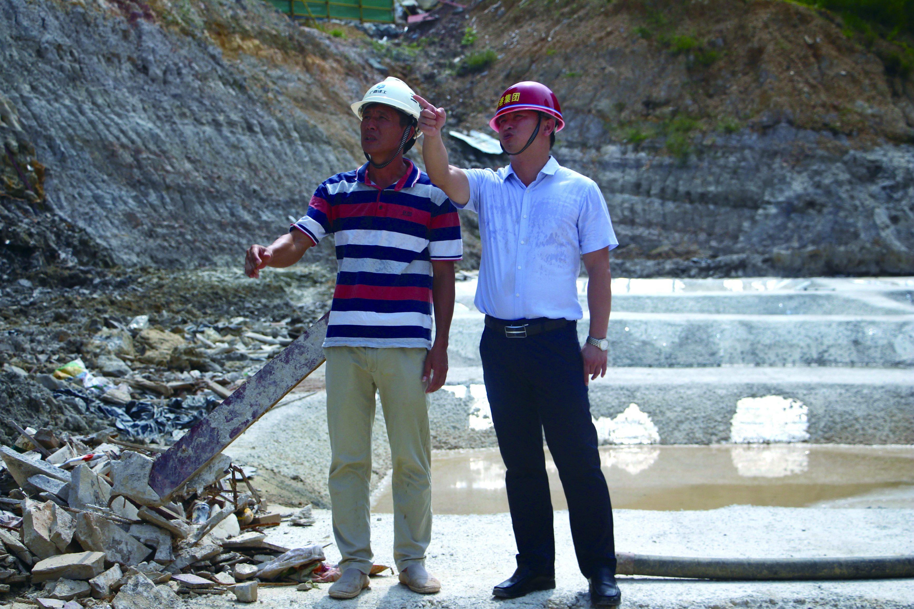 何小勇(右)到現(xiàn)場(chǎng)查看項(xiàng)目進(jìn)度