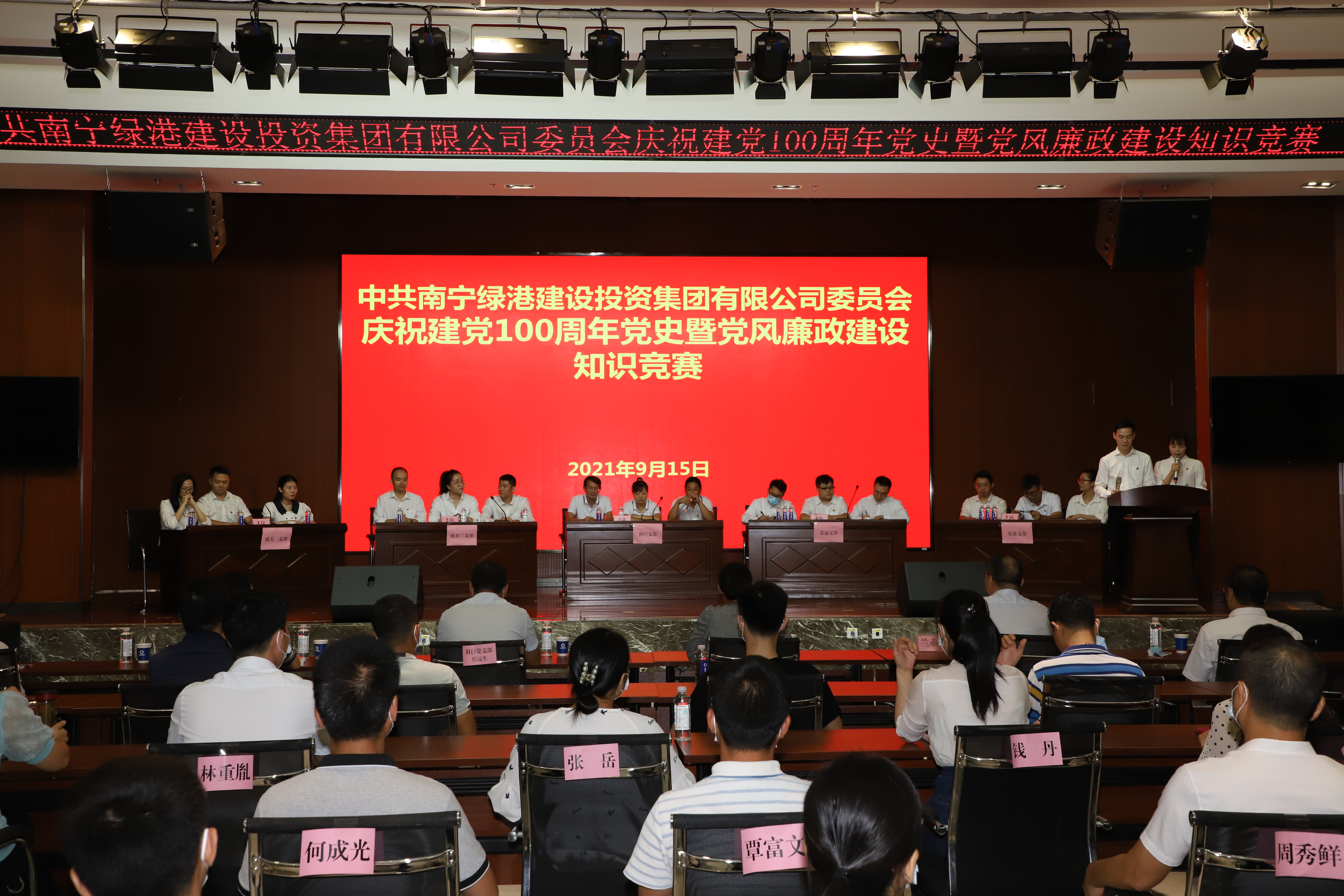 9月15日,一場別開生面的黨史暨黨風廉政建設知識競賽在綠港集團拉開帷幕。來自綠港集團機關一支部、機關二支部、科巨黨支部、嘉通黨支部、榮鑫黨支部5個代表隊共15名參賽選手參加比賽,集團黨委領導班子成員、集團各黨支部書記、各支部黨員及入黨積極分子約100人參加活動。