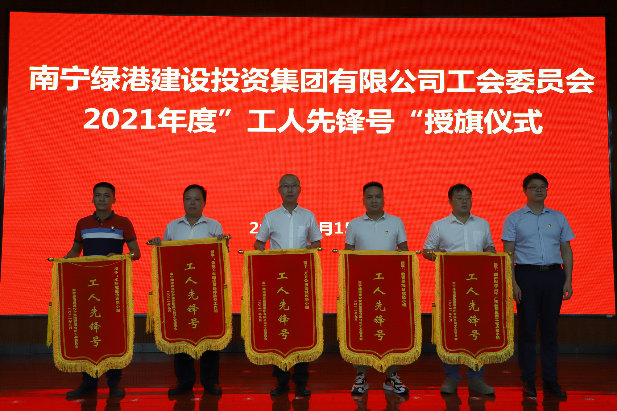 9月15日,綠港集團(tuán)工會委員會舉行2021年度“工人先鋒號”授旗儀式,對綠港集團(tuán)黨史學(xué)習(xí)教育工作籌劃小組等10個“工人先鋒號”先進(jìn)班組進(jìn)行表彰。開展“工人先鋒號”創(chuàng)建活動,是集團(tuán)工會樹立“標(biāo)桿旗幟”,激發(fā)“爭先進(jìn)位”的重要舉措。經(jīng)過多年的創(chuàng)新創(chuàng)建,綠港集團(tuán)“工人先鋒號”已成為綠港集團(tuán)一張閃亮的工會品牌。