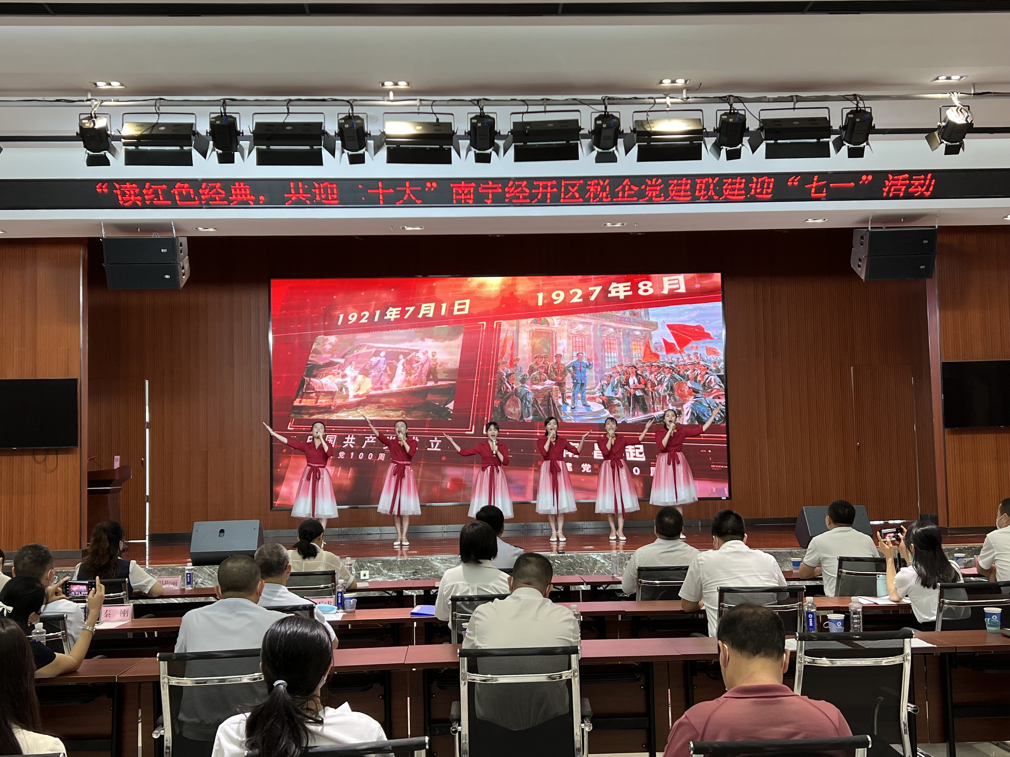 6月24日上午,綠港集團(tuán)黨委與南寧經(jīng)開區(qū)稅務(wù)局黨委、南寧經(jīng)開區(qū)商會(huì)黨委、南寧經(jīng)開區(qū)組織部黨支部、南寧經(jīng)開區(qū)黨群工作局黨支部等7個(gè)共建單位在創(chuàng)意產(chǎn)業(yè)園9樓會(huì)議室開展“慶‘七一’誦讀紅色家書 汲取奮進(jìn)力量 喜迎二十大”為主題的黨建聯(lián)建活動(dòng)。