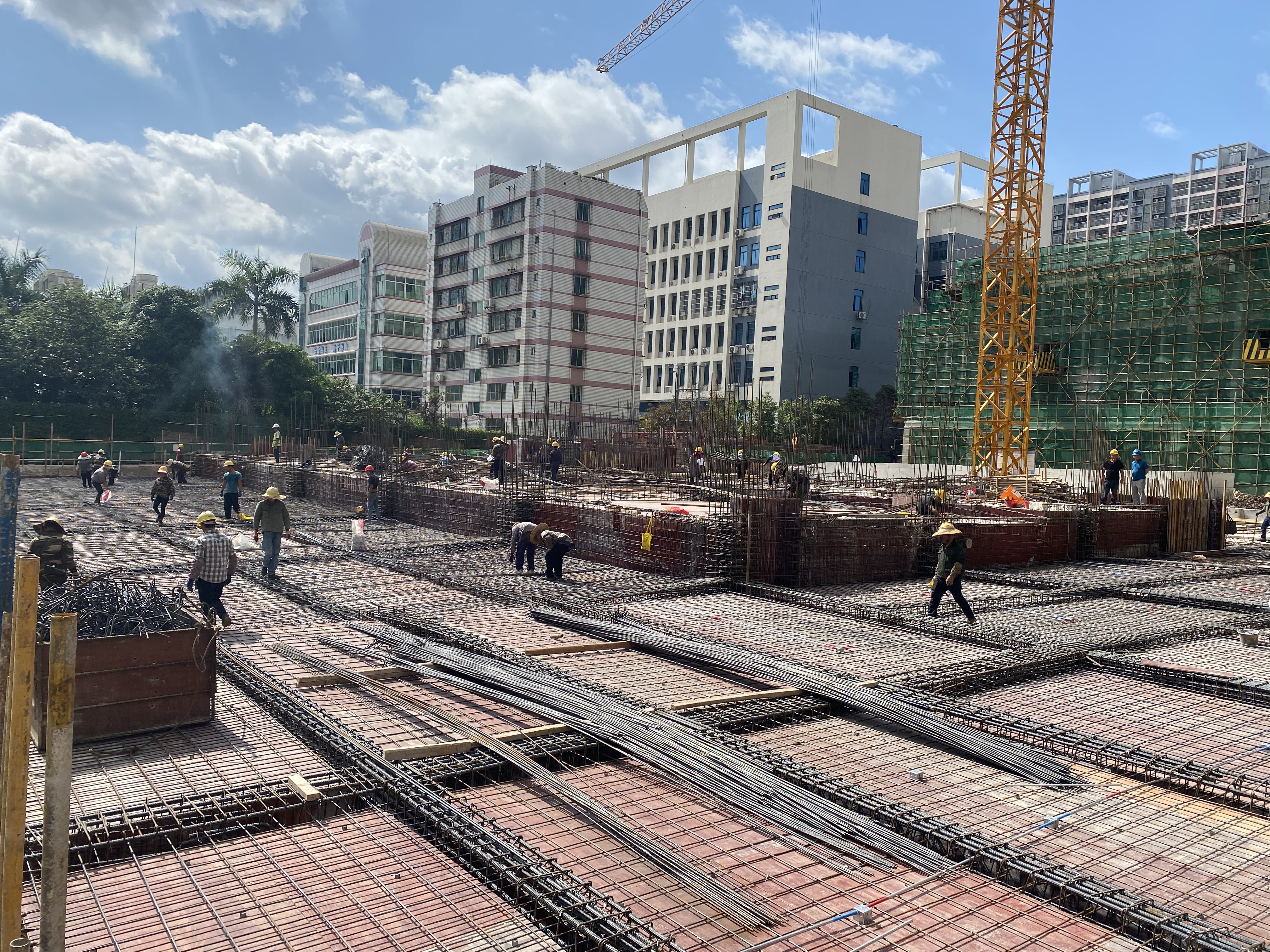 按照施工計(jì)劃,項(xiàng)目2#樓為最后施工的一個(gè)單體。因工作面有限,加上雨季施工,土方施工遭遇到前所未有的困難,最后幾千立方土,每一方都需要勾機(jī)采用二次甚至三次轉(zhuǎn)運(yùn)的方式才能裝車外運(yùn),對(duì)預(yù)定工期兌現(xiàn)造成極大影響。為克服困難,自土方開挖以來(lái),綠港集團(tuán)下屬嘉通公司緊盯預(yù)售節(jié)點(diǎn)為目標(biāo),結(jié)合工程實(shí)際,制定了詳細(xì)、合理的搶工計(jì)劃,并迅速建立一支“強(qiáng)管理、控疫情、重安全、抓質(zhì)量”工作團(tuán)隊(duì),全員爭(zhēng)分奪秒追上施工“加速列車”,與時(shí)間賽跑。同時(shí)要求參建單位優(yōu)化每道施工工序搭接,合理穿插施工,實(shí)行小雨不停工、大雨制造條件施工、天晴三班制搶工的施工方案。在先后克服了疫情反復(fù)、揚(yáng)塵噪音管控以及惡劣天氣帶來(lái)的各種問(wèn)題,最終于6月30日取得喜人進(jìn)展,項(xiàng)目順利完成全部地下室工程的主體施工。