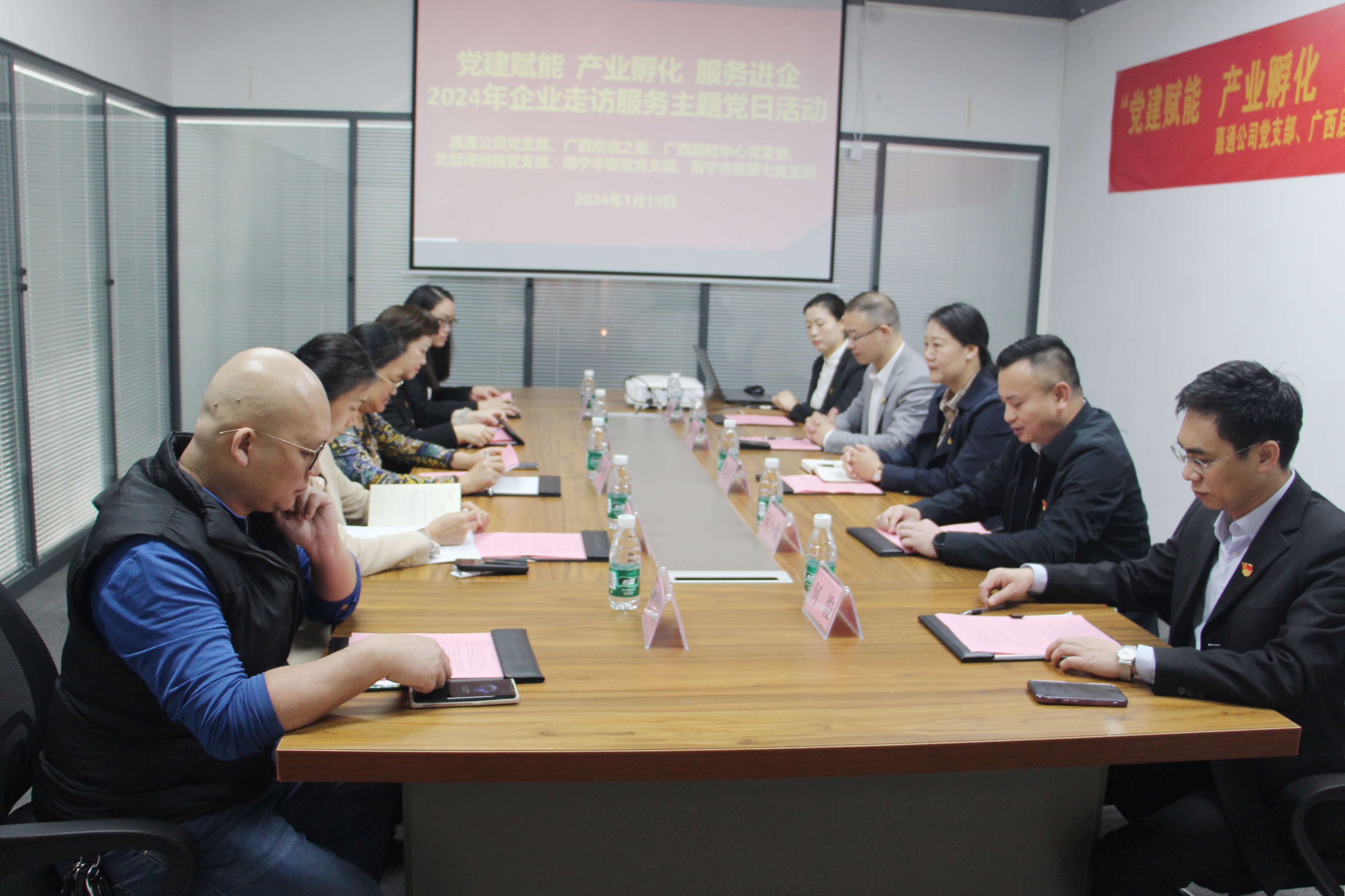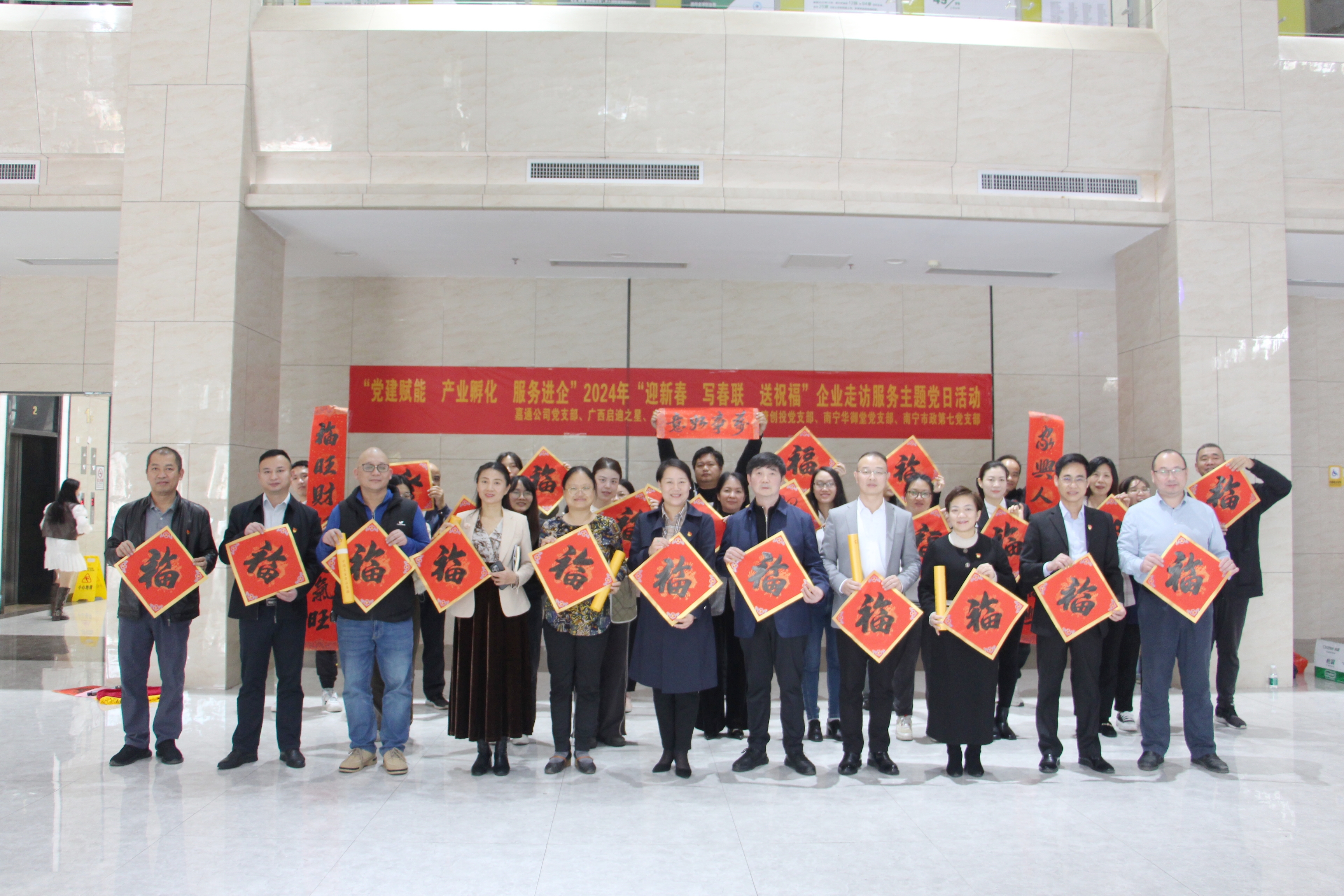 為深化黨建與業(yè)務(wù)融合,通過黨建引領(lǐng)提升企業(yè)服務(wù)質(zhì)量,發(fā)揮好產(chǎn)業(yè)經(jīng)濟(jì)穩(wěn)定器功能,以做強(qiáng)“鏈上黨建”推動產(chǎn)業(yè)高質(zhì)量發(fā)展,1月19日,嘉通公司黨支部深入金凱工業(yè)園聯(lián)合廣西啟迪之星公司、廣西器檢中心黨支部、北部灣創(chuàng)投黨支部、南寧華御堂黨支部、南寧市政第七黨支部開展“黨建賦能 產(chǎn)業(yè)孵化 服務(wù)進(jìn)企”2024年“迎新春 寫春聯(lián) 送祝?!逼髽I(yè)走訪服務(wù)主題黨日活動,嘉通公司黨支部黨員代表及職工代表參加本次活動。