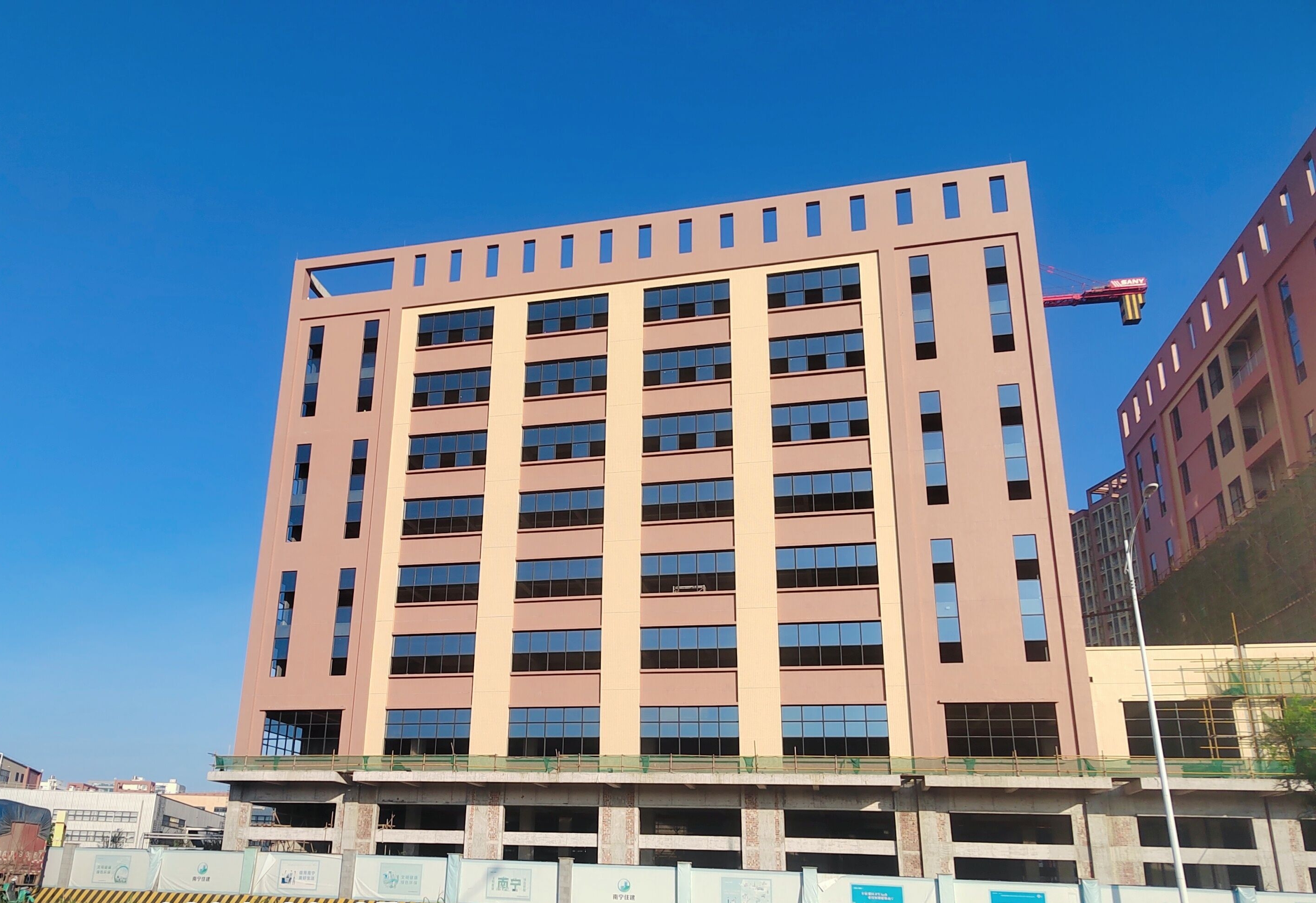 神冠膠原智庫項目加工廠房23位于南寧國凱大道東13號,項目合同金額5441.63萬元,總建筑面積約3.6萬㎡,建筑高度38.95m,建筑層數(shù)地上8層,地下1層,結構形式為框架結構。其中樁基工程采用預應力管樁進行靜力壓樁施工。項目于2023年5月7日開工建設,并于2024年5月8日完成主體驗收。