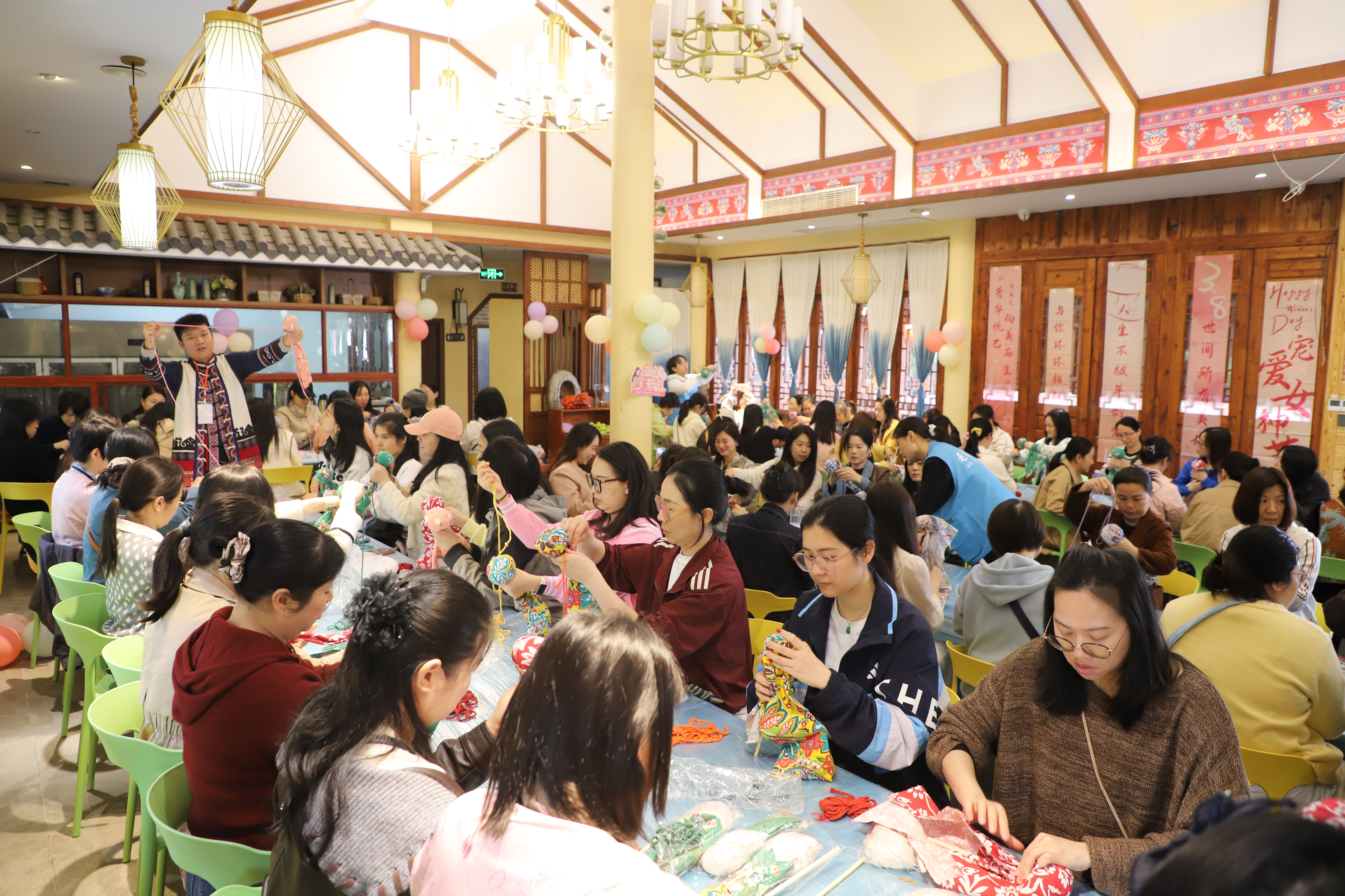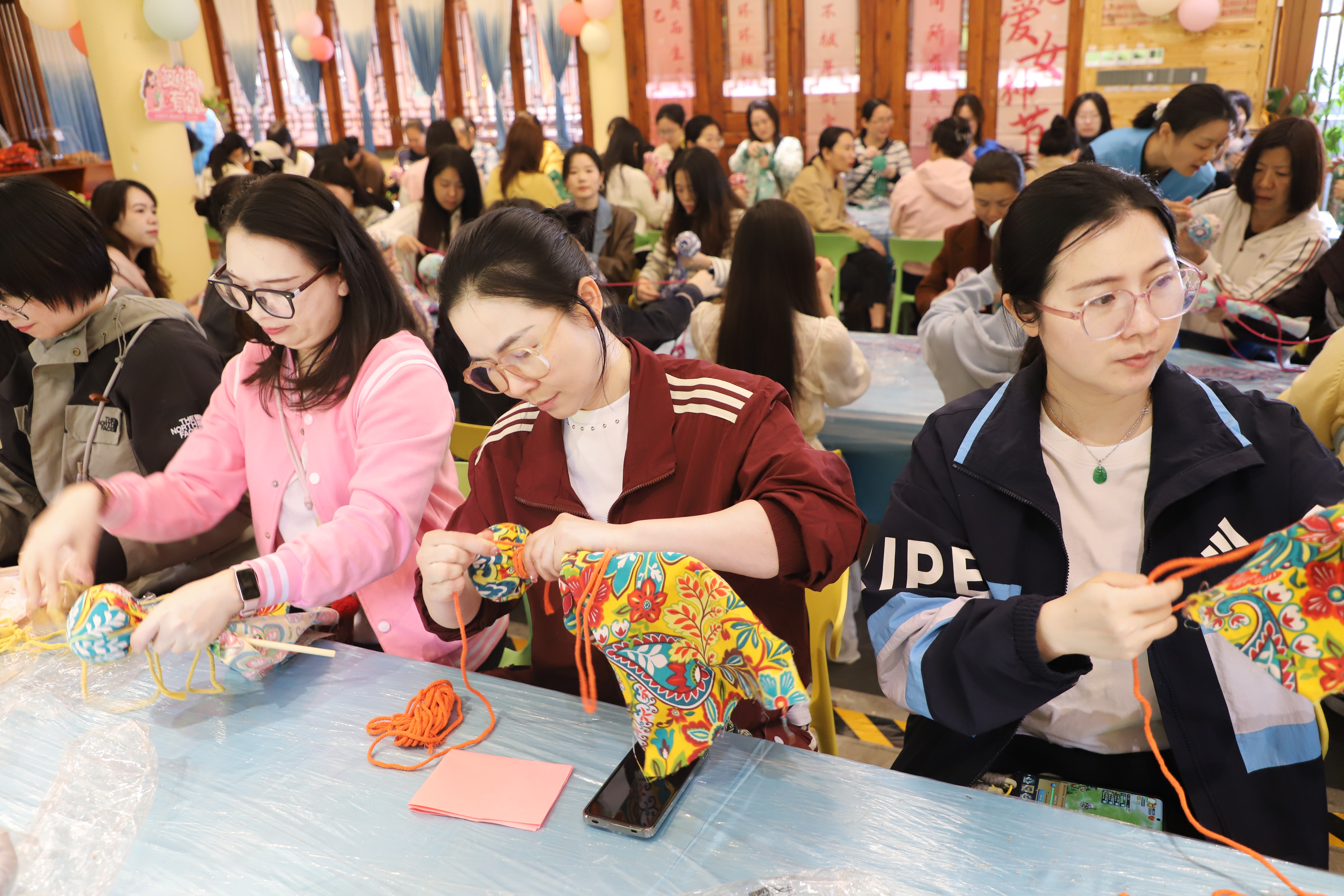 活動現(xiàn)場,女職工們在非遺傳承人的專業(yè)指導(dǎo)下,沉浸式領(lǐng)略毛南族深厚的文化底蘊與獨特民俗風(fēng)情。在艾草養(yǎng)生錘制作環(huán)節(jié),大家穿針引線、精心打磨,將傳統(tǒng)手工藝的匠心融入指尖方寸。隨后,女職工們漫步于古色古香的小鎮(zhèn),交流互動、定格美好瞬間。大家在輕松愉悅的氛圍中舒緩身心、增進(jìn)情誼,充分展現(xiàn)了集團(tuán)女職工昂揚向上、溫婉雅致的精神風(fēng)貌。